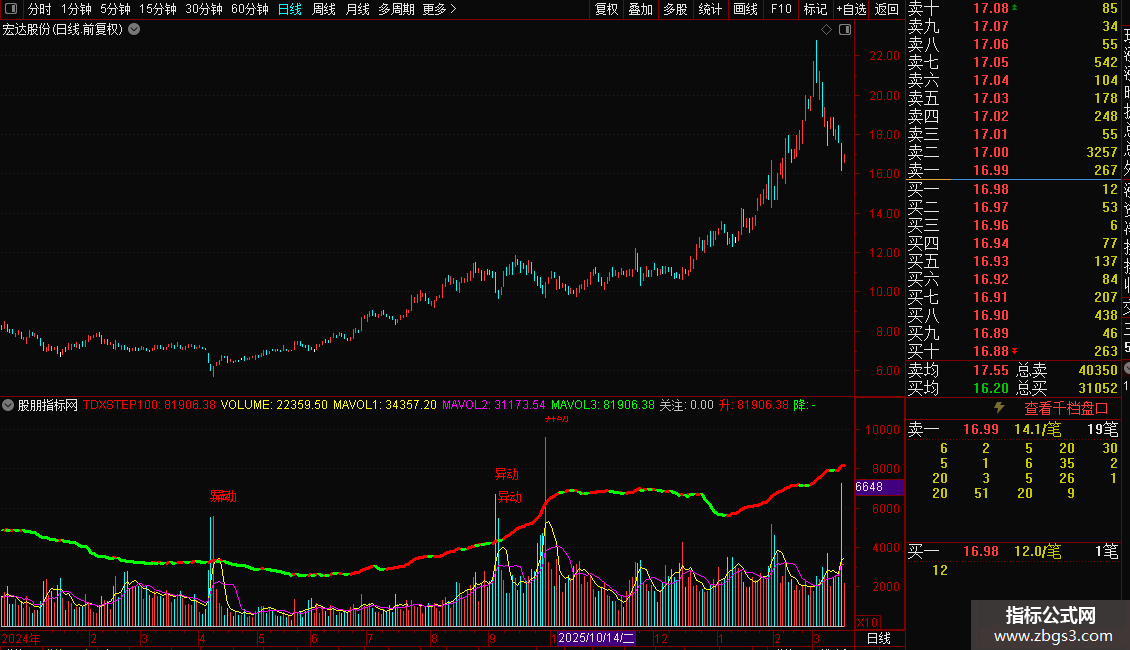 DRAWTEXT(关注=1,VOLUME+10000,'异动'),COLORRED;