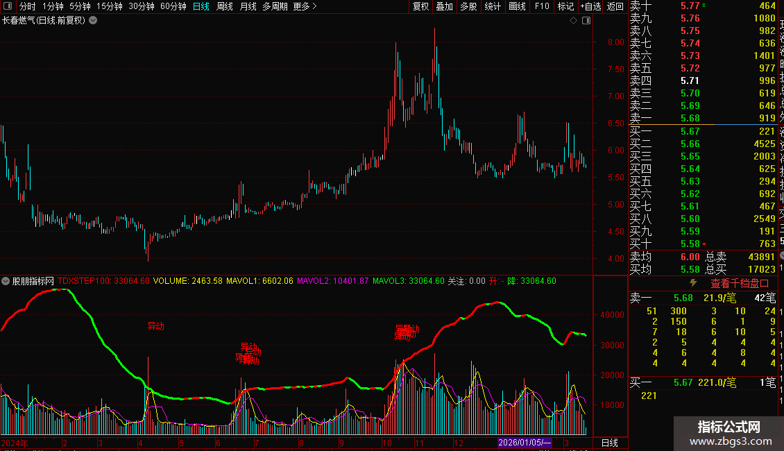 TDXSTEP100:MA(VOLU,60)*6*VAR1,,COLORRED;