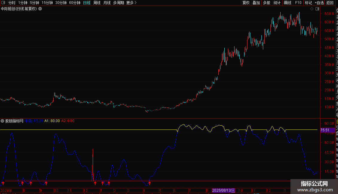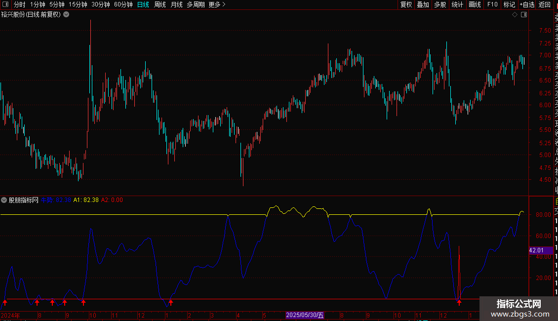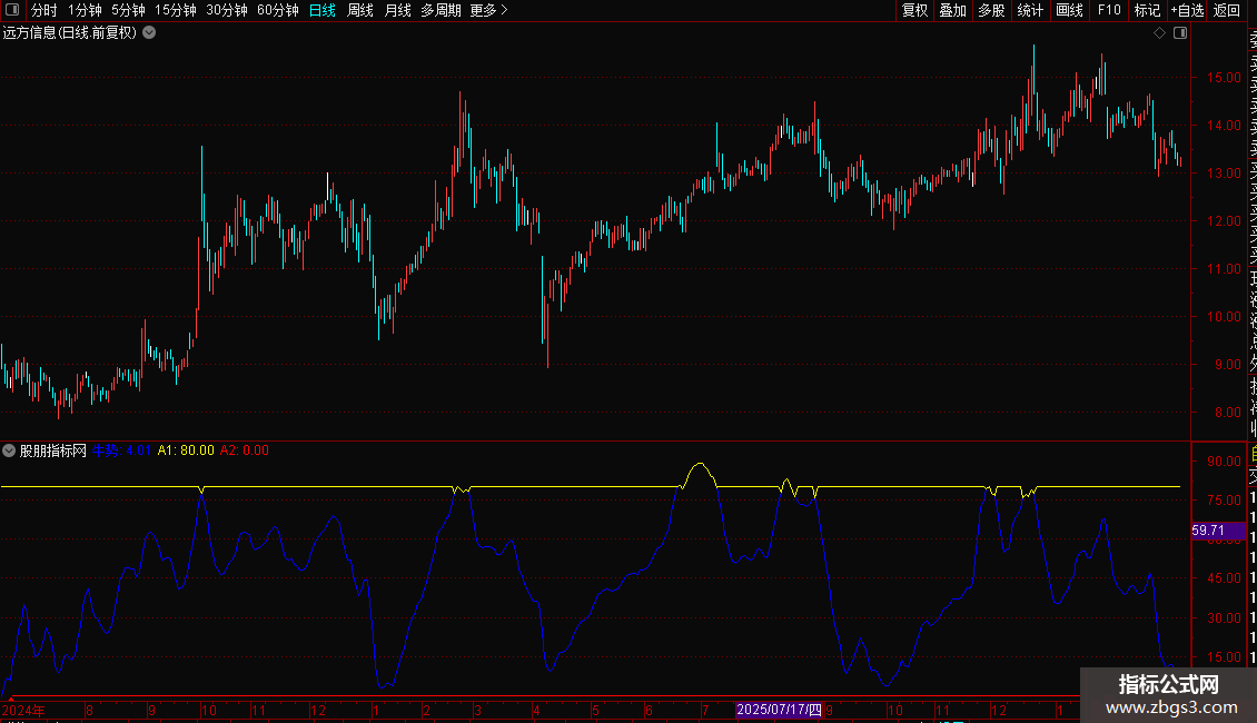 A1:IF(牛势>76,牛势,80),COLORYELLOW;
