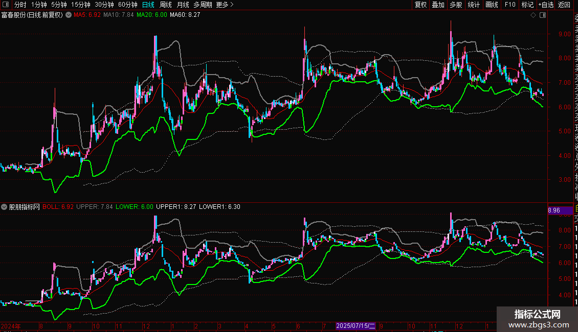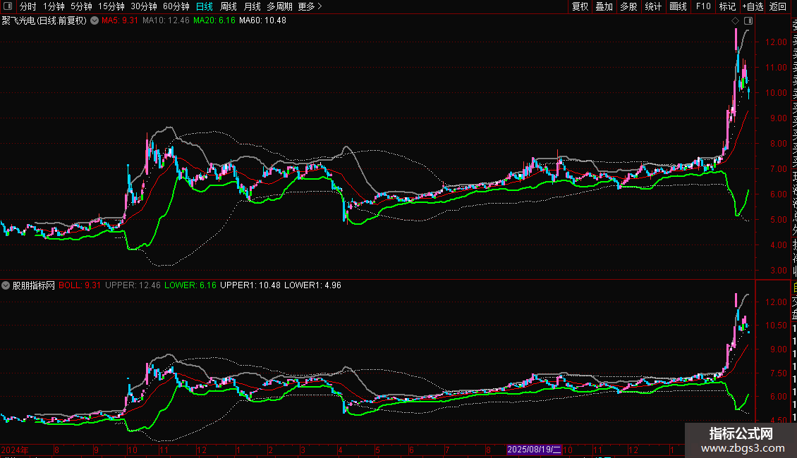 日线强势站上红色布林线,且K线是粉红色时,就可以做多;