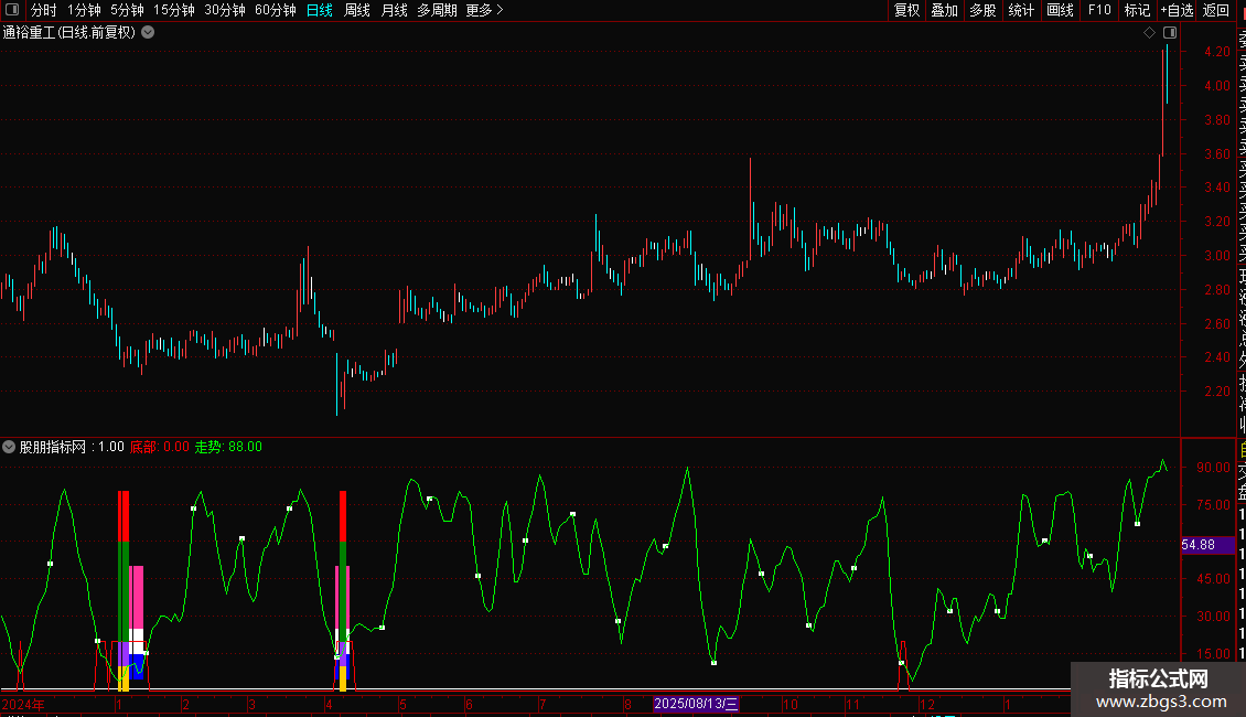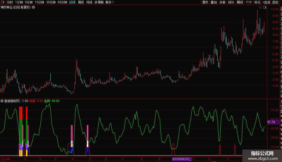 有彩色柱子组合出现,是牛王入底信号,随时展开反攻,可以关注!