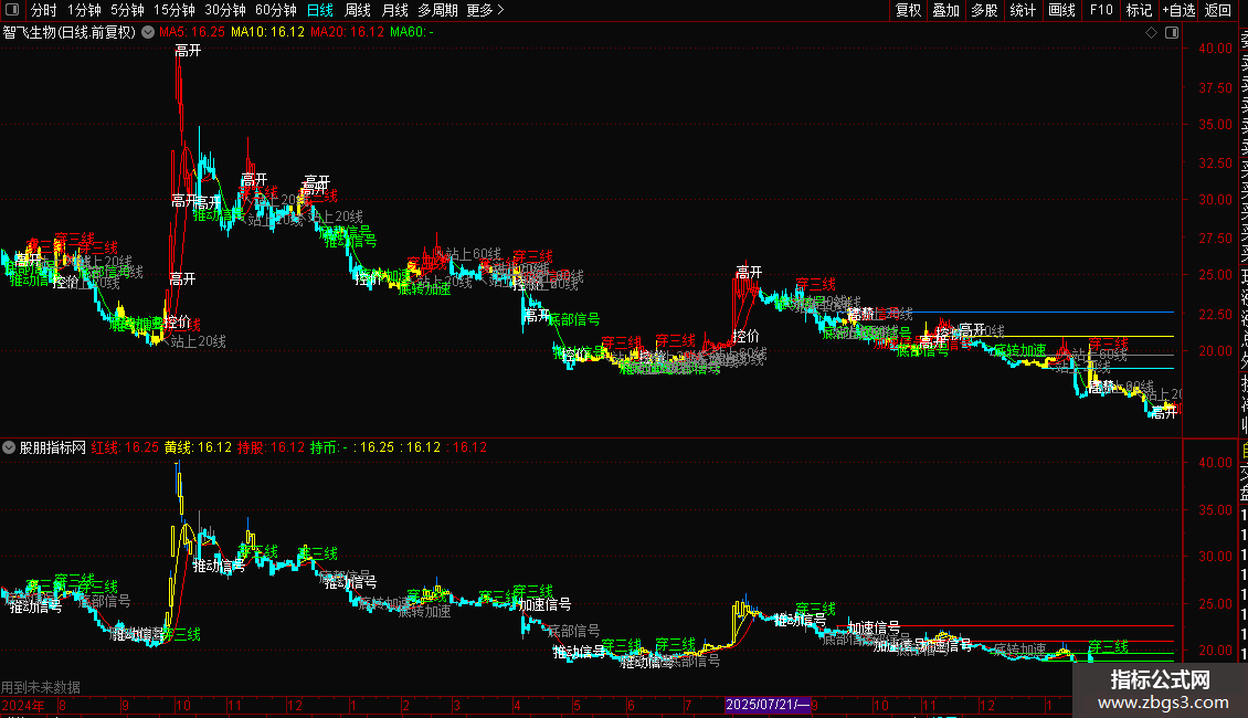 DRAWTEXT(O <= MA(C,60) AND MA(C,60) <= C , L, '↖站上60线'),COLORGRAY;