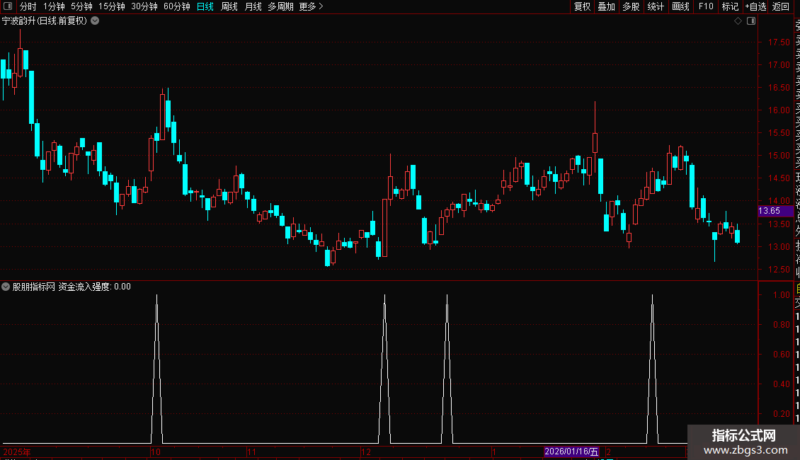 资金流入上穿0轴时买入,资金流入下穿0轴时必须卖出。