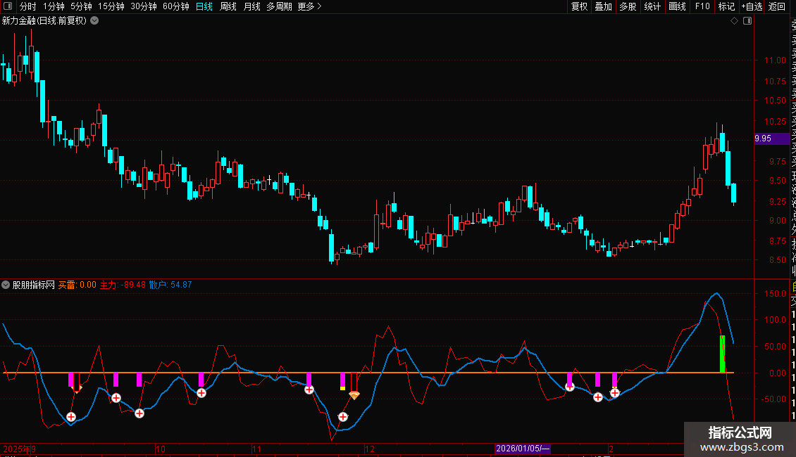 X_19:=CROSS(主力,散户) AND 主力<(-10);