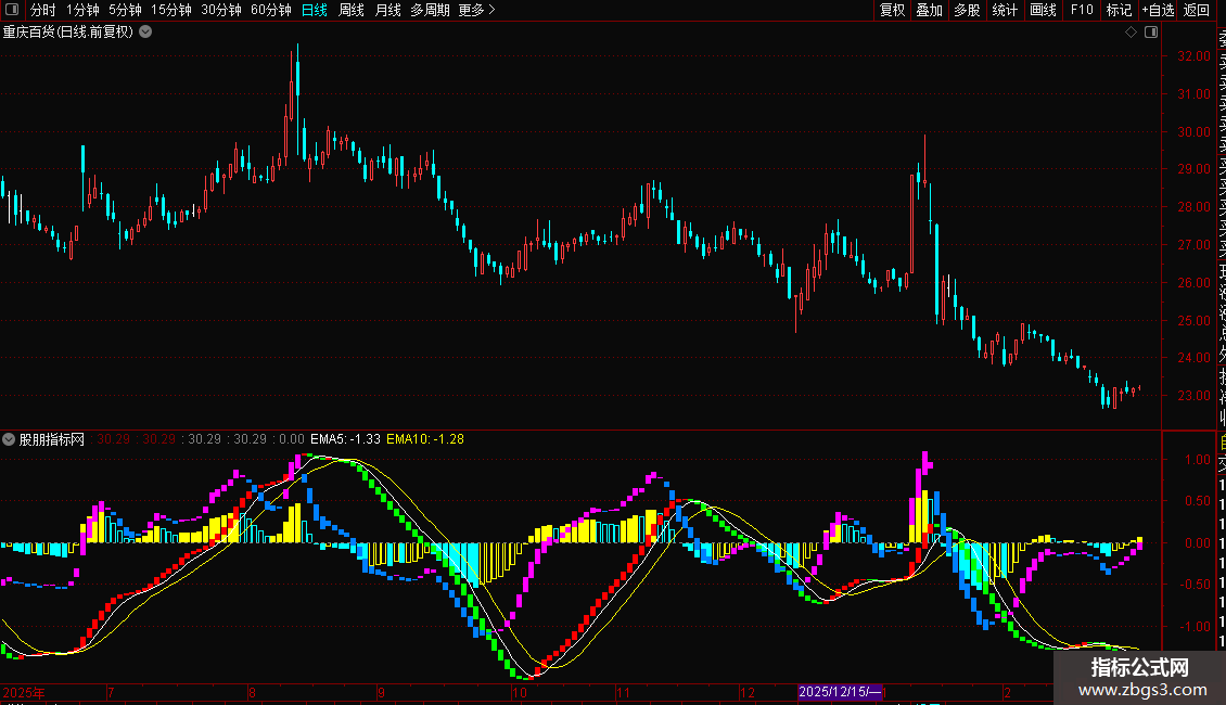 STICKLINE(MACD2<0,0,MACD2,2,0),COLORCYAN;{0轴下跌}
