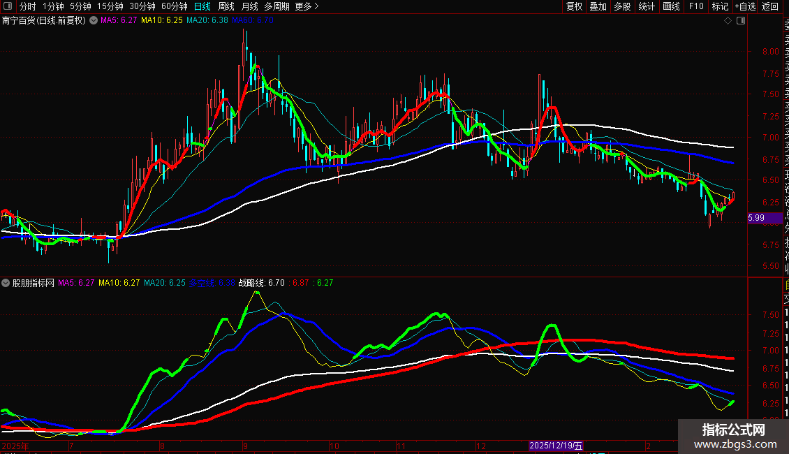 多空线:EMA(CLOSE,99),COLORBLUE,LINETHICK3;