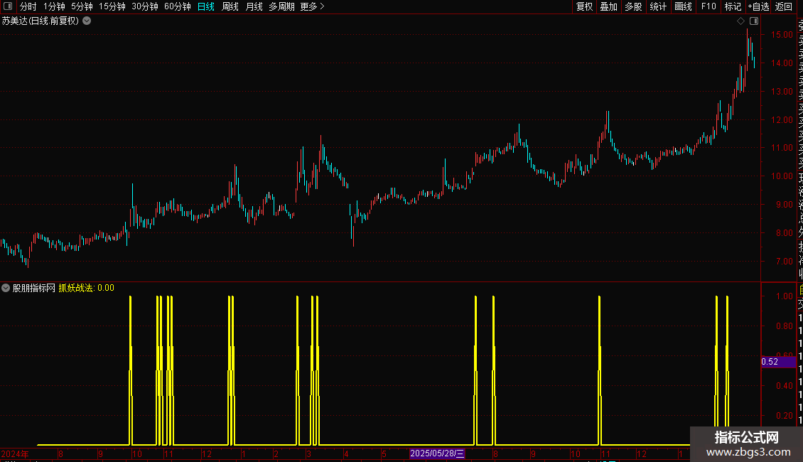 本指标综合了三个选股指标作出,属于强势股追涨指标,还未经过实战检验,请先熟悉后再使用;小心求证,谨慎使用