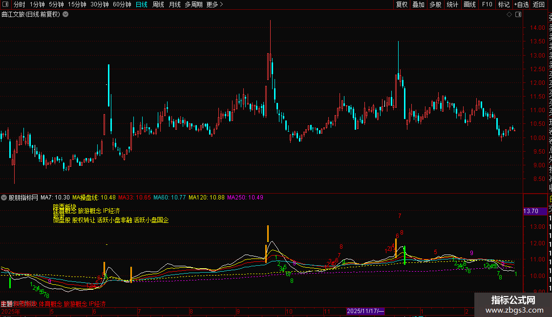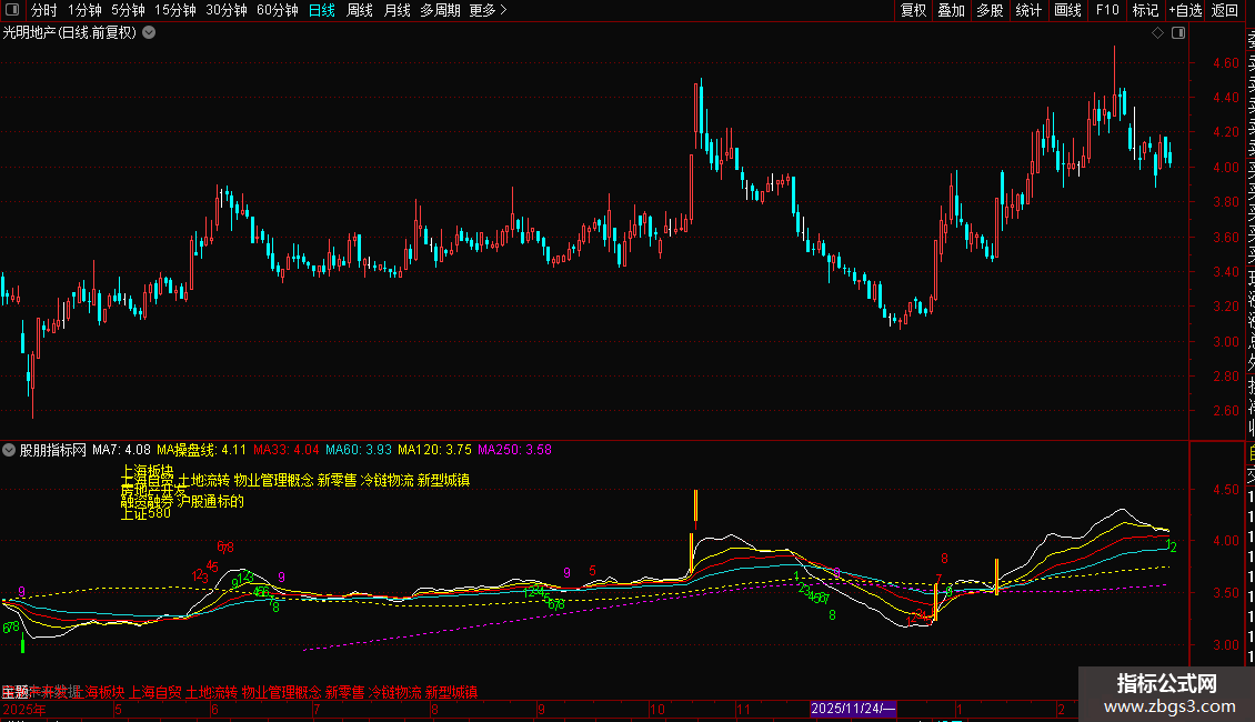本指标包含一个综合主图(内含实战均线,TD九转结构,涨跌停提示,股票包含板块),一个特色成交量指标,结合我之前发布的KDJ改良版是一整套短线交易系统搭配使用成功更高。
