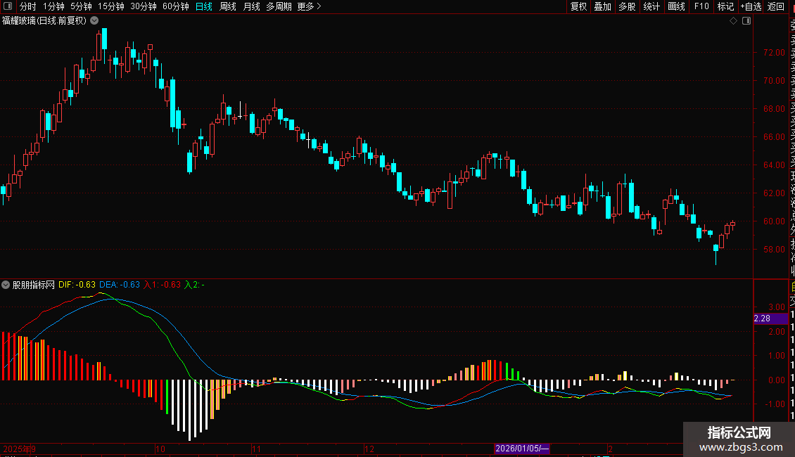 STICKLINE(落,0,MACD,1,0),COLORWHITE;