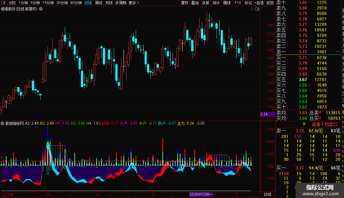 STICKLINE(机构>0,H2,H2+2*(ABS(散户)+ABS(中户)+ABS(大户)+ABS(机构)),1,0),COLORRED;