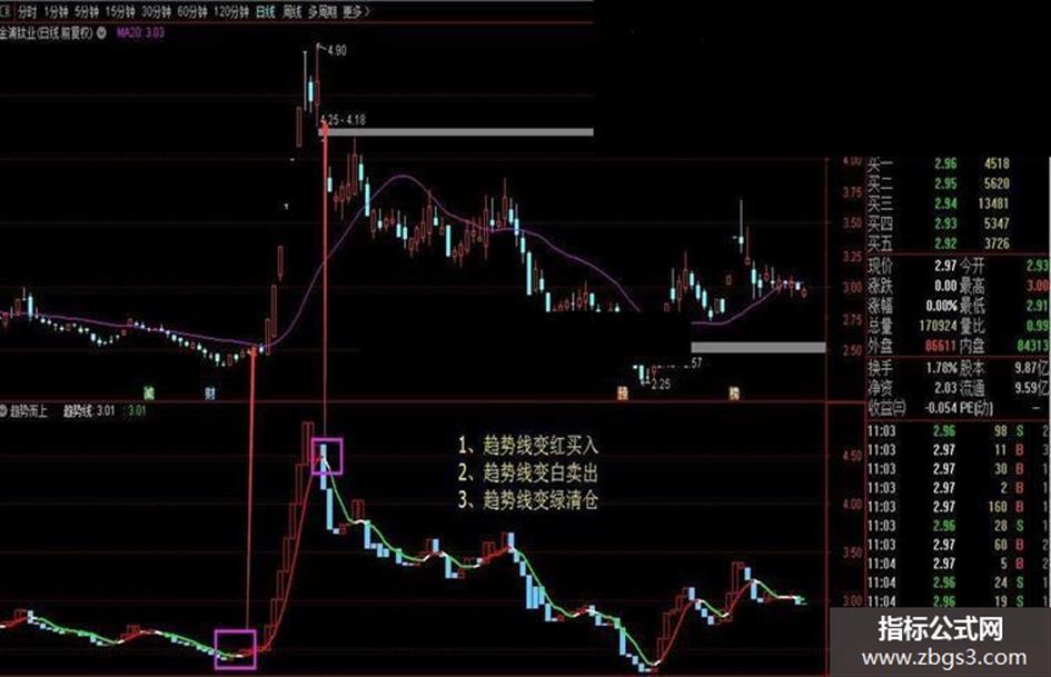 STICKLINE(趋势线>REF(趋势线,1),CLOSE,OPEN,3,0),COLORRED;