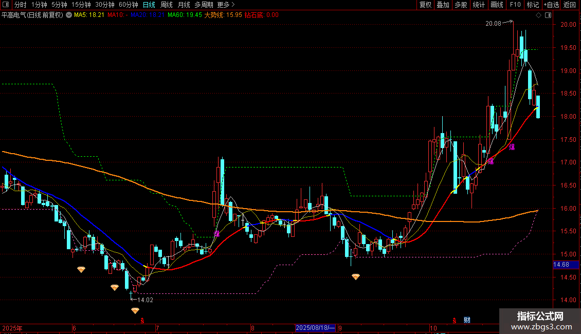 大势线:MA(CLOSE,120)*VAR1,COLOR1188FF,LINETHICK2;