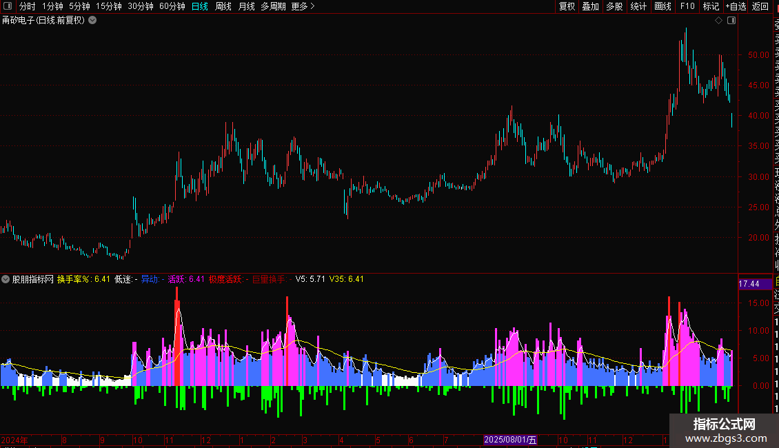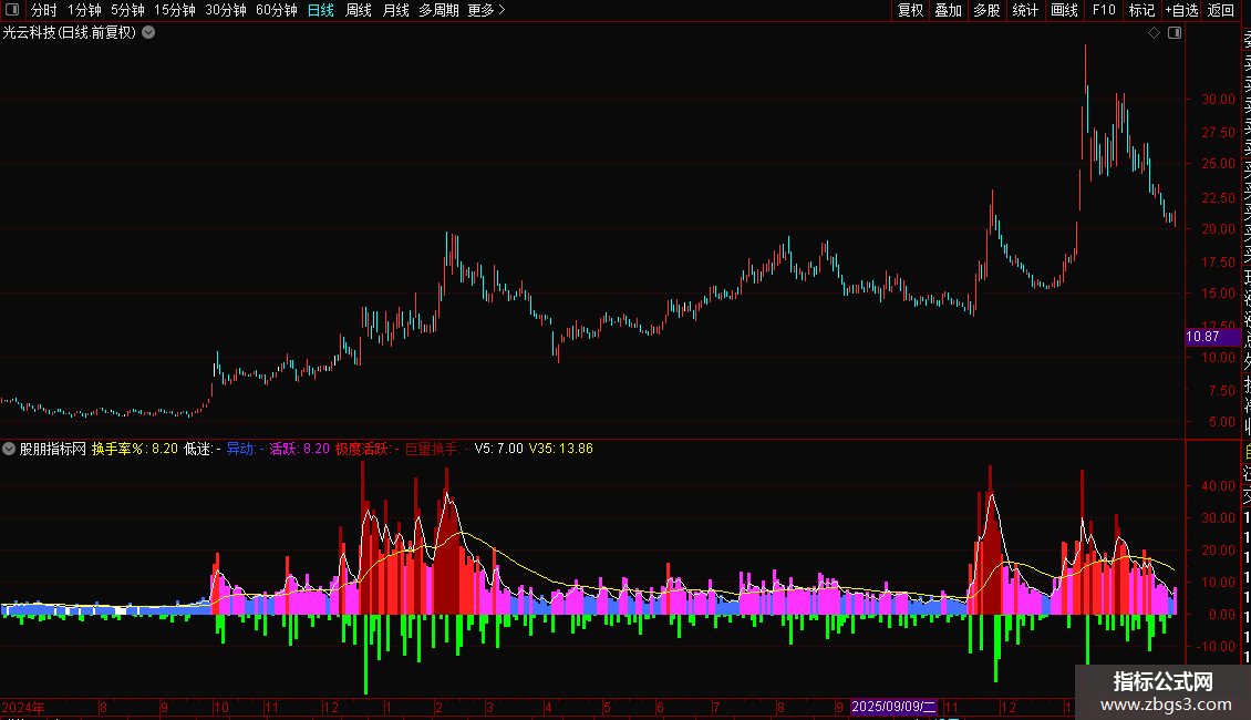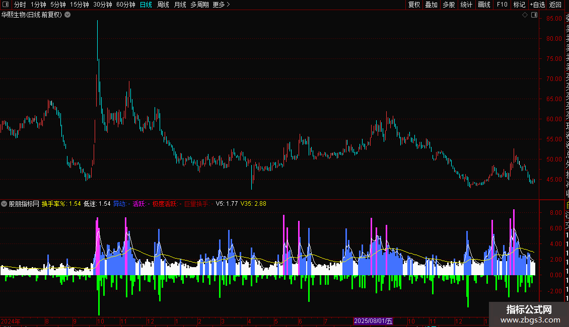 V5:SMA(换手率%,5,2),COLORWHITE;