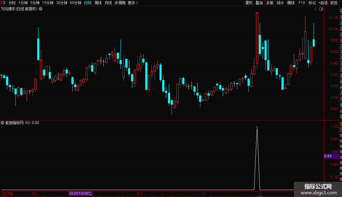 KDD:=REF(中期,1)<1 AND 中期>1;