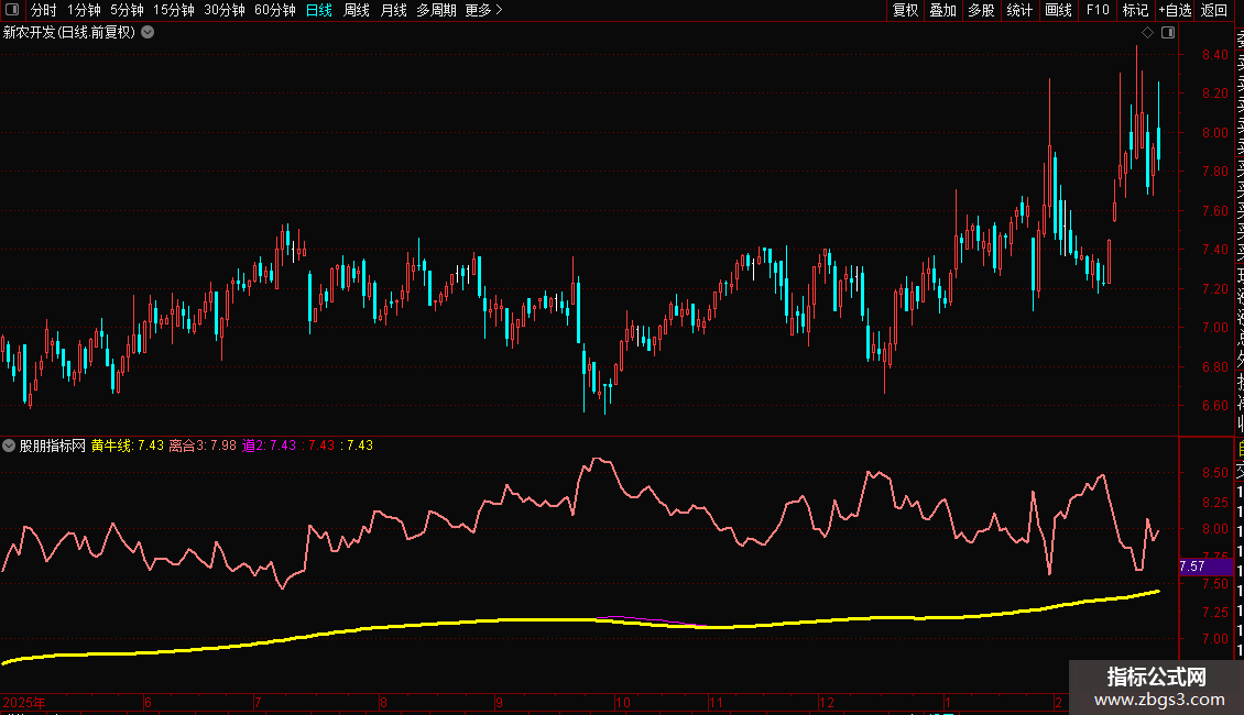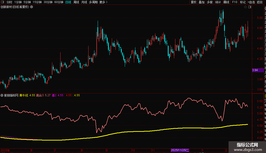 道2:6*HHV(黄牛线,3)-5*黄牛线;