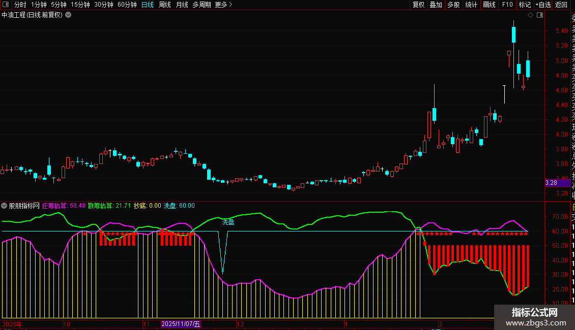 DRAWTEXT(庄筹估算>60,58,'★'),COLORRED;