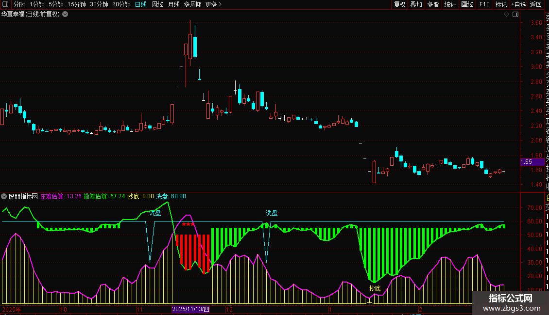 STICKLINE(庄筹估算<散筹估算 AND 散筹估算<60,散筹估算,55,1,0),COLORGREEN;