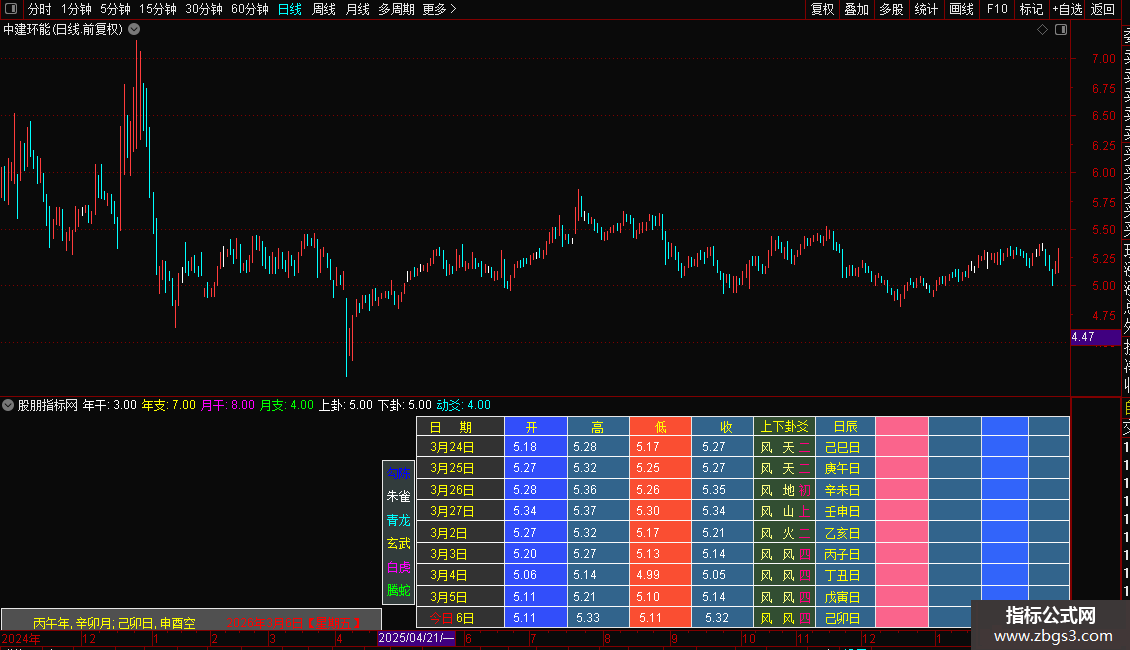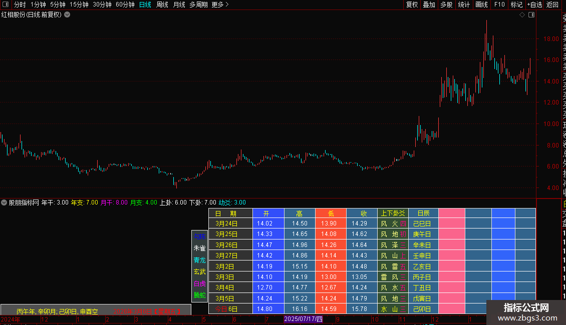 本指标价格计算没有解决大盘指数末尾为0的情况,还需要细化修正,并且引用的是即时行情数据而不是成交列表数值,一定要注意。比如:2017年5月11日收盘3061.50点应该是天水讼却变成天山遁,动爻也不对。
