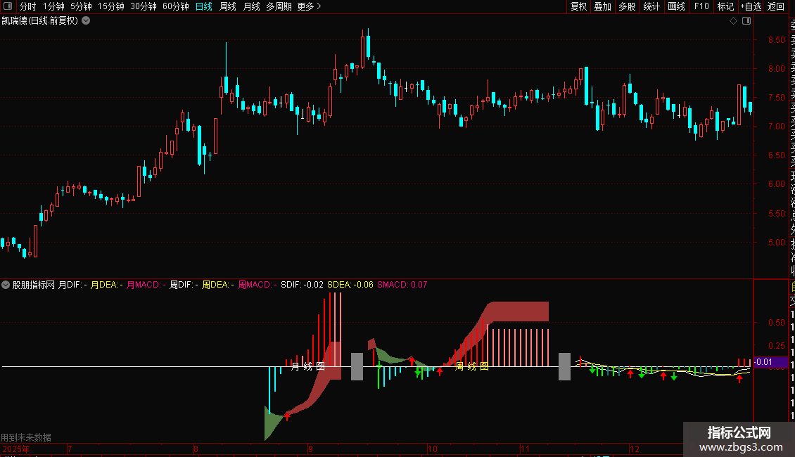 2.再导入kdj macd.tn6 指标,日,周,月KDJ MACD同显。