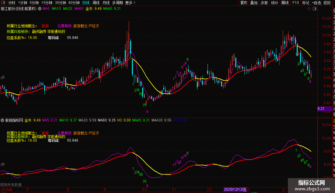 DRAWTEXT_FIX(1,0.02,0.23,0,STRCAT('控盘系数%:',CON2STR(控盘系数%,2))),COLORYELLOW;