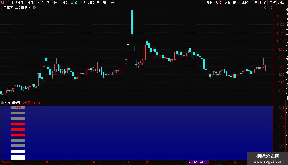 DRAWTEXT_FIX(涨停量>30,0.05,0.1,0,'▇'),COLORYELLOW;