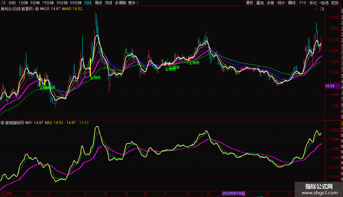 DRAWTEXT(一阳穿三线,L-0.1, '金蜘蛛'),COLORGREEN;