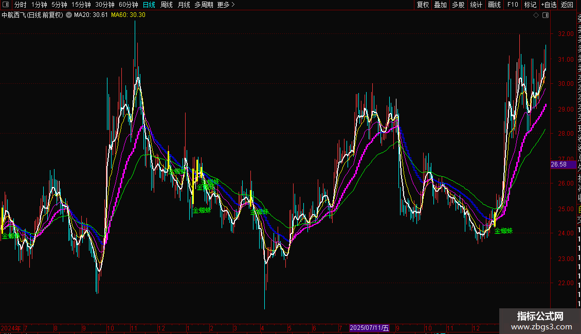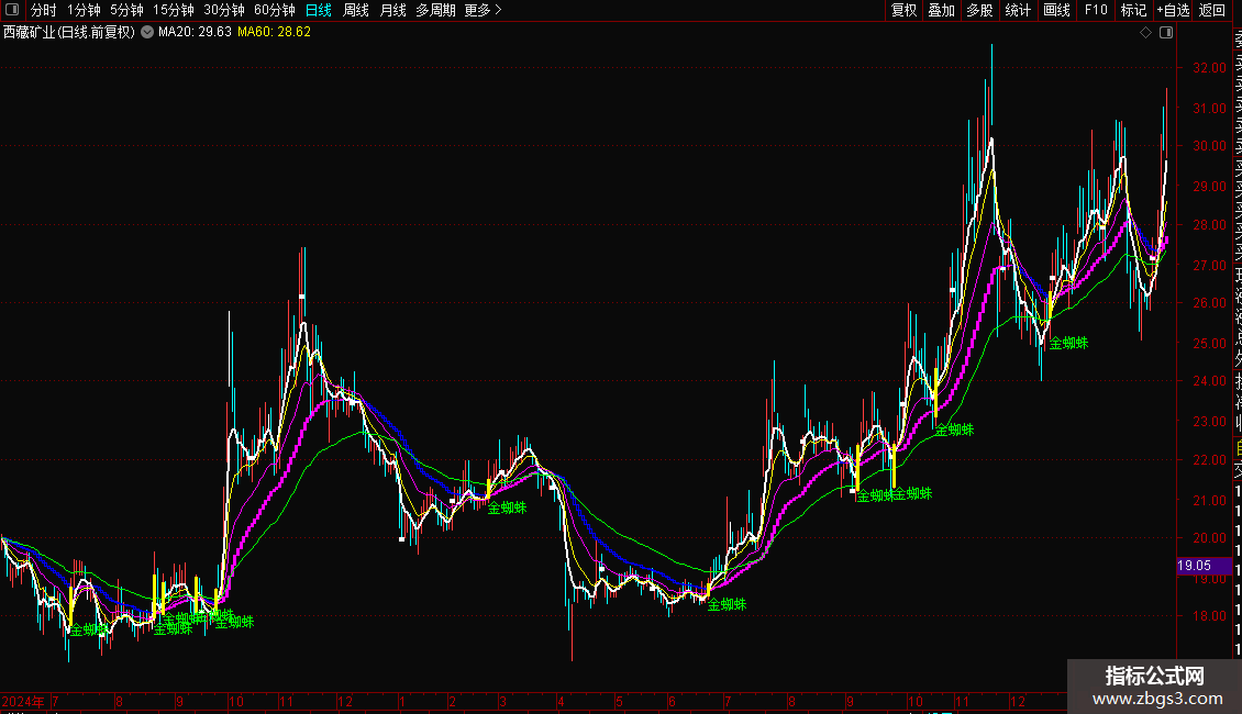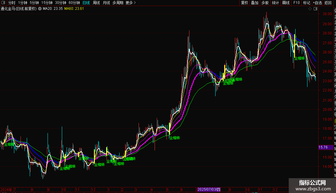 DRAWTEXT(一阳穿三线,L-0.1, '金蜘蛛'),COLORGREEN;