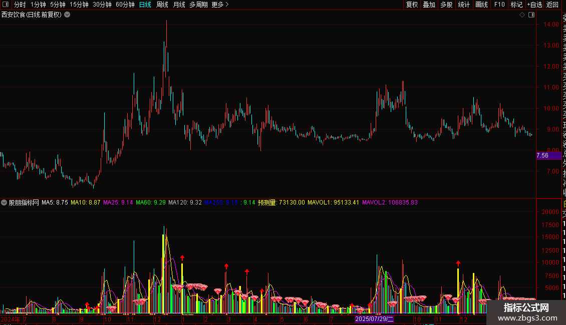 DRAWICON((MA(V,4)*4+V)/5>=MA(V,60) AND MA(V,5)<MA(V,60),预测量*1.2,1);