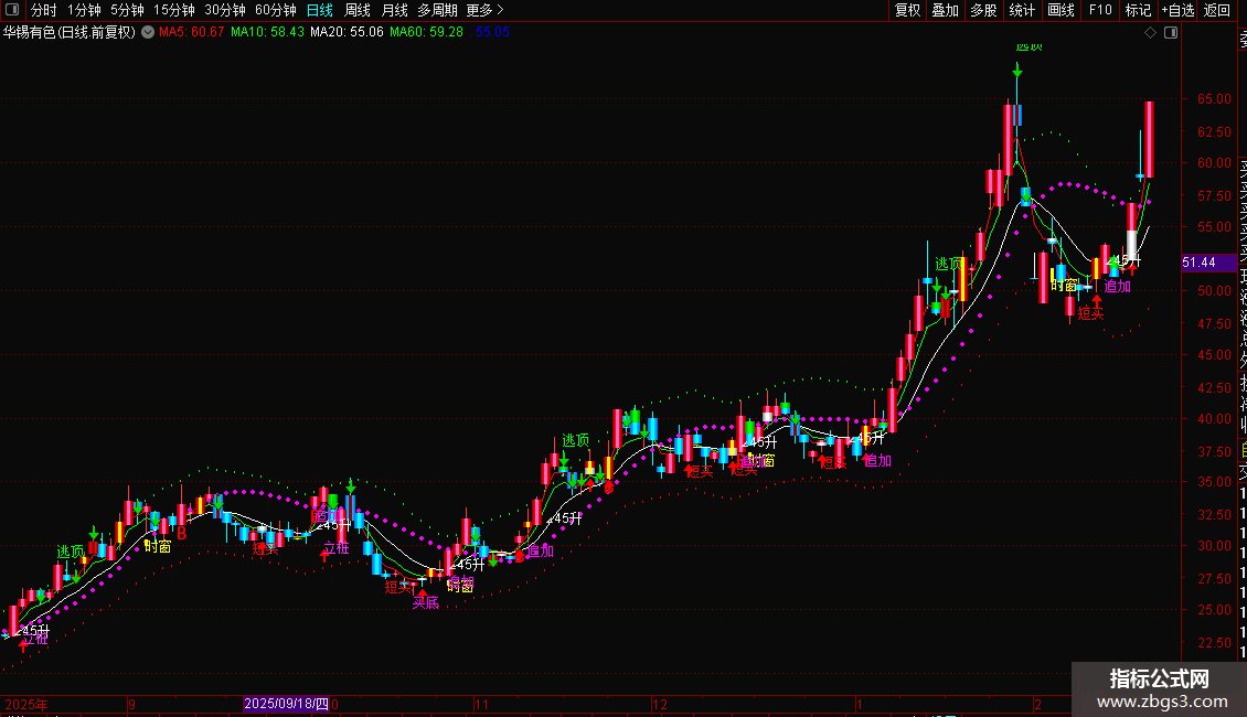下:EMA(中,5),COLORWHITE,LINETHICK1;