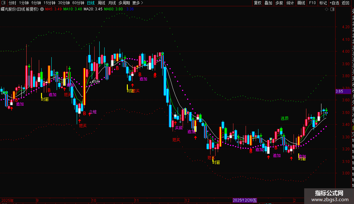 上:EMA(C,3),COLORRED,LINETHICK1;
