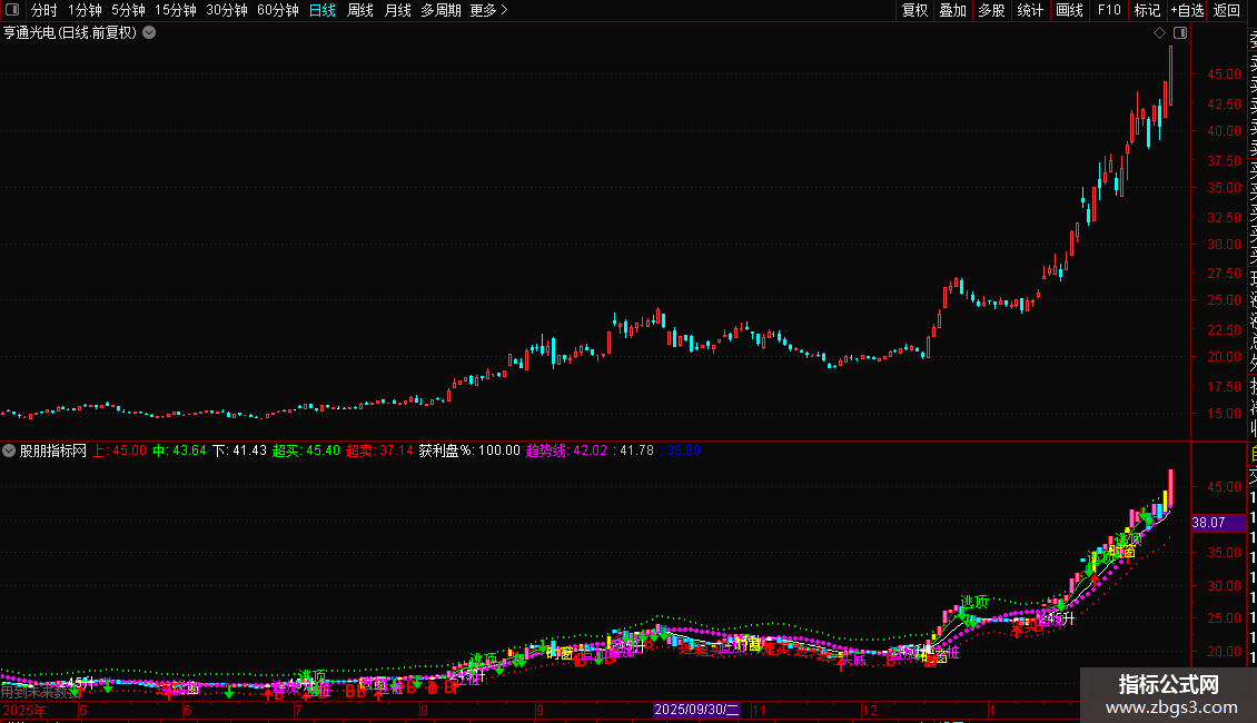 支撑:=REFDATE(V2,DATE),POINTDOT,LINETHICK3,COLORCC66FF;