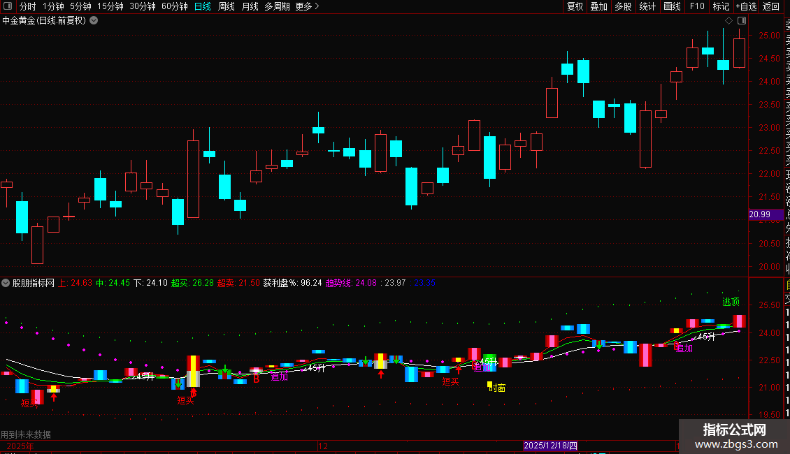 上:EMA(C,3),COLORRED,LINETHICK1;