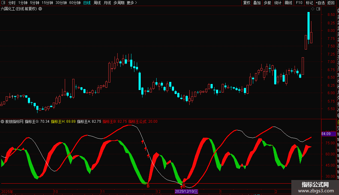 指标王E:=IF(指标王D>0,指标王D,指标王D),COLORFFFFFF,LINETHICK2;