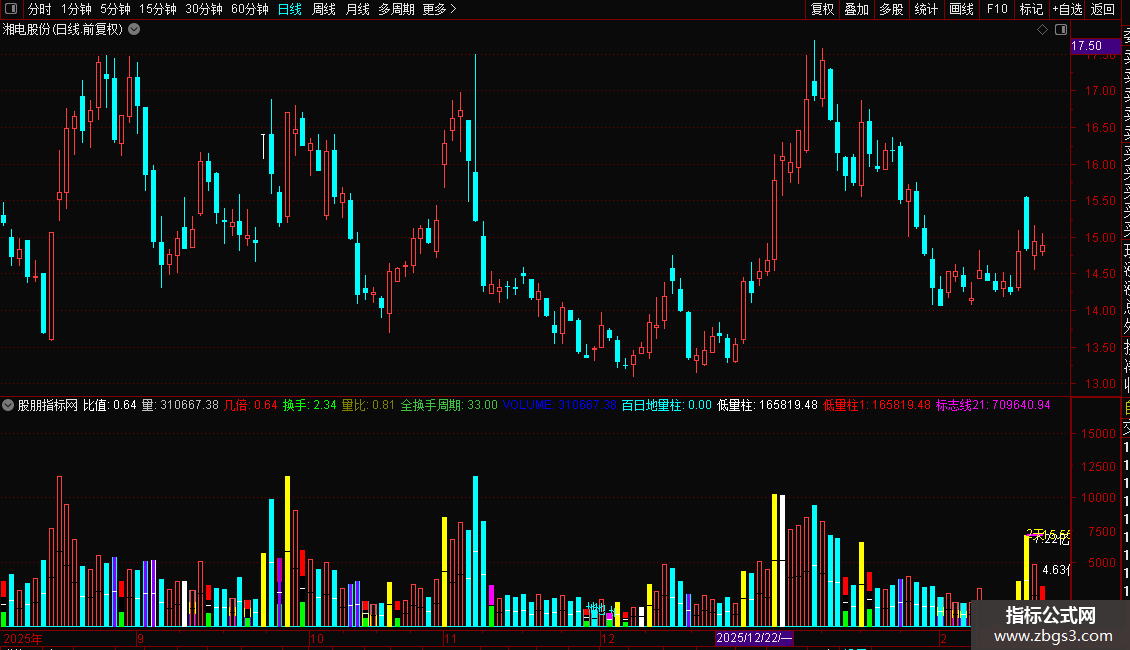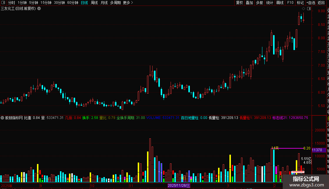 量比:VOL/REF(MA(VOL,5),1),NODRAW,COLORBROWN;