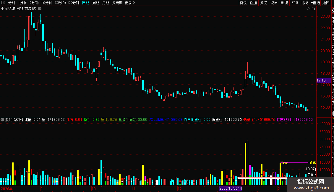 DRAWTEXT(百日地量柱,VOL+3000,'地'),COLORCYAN;
