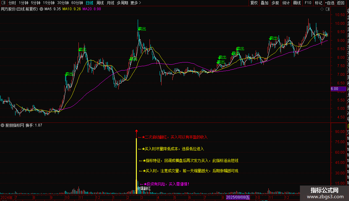 DRAWTEXT(XG1>0,82,' ←★二次启动翻红,买入可以有丰盈的收入'),COLORRED;