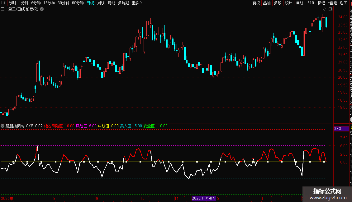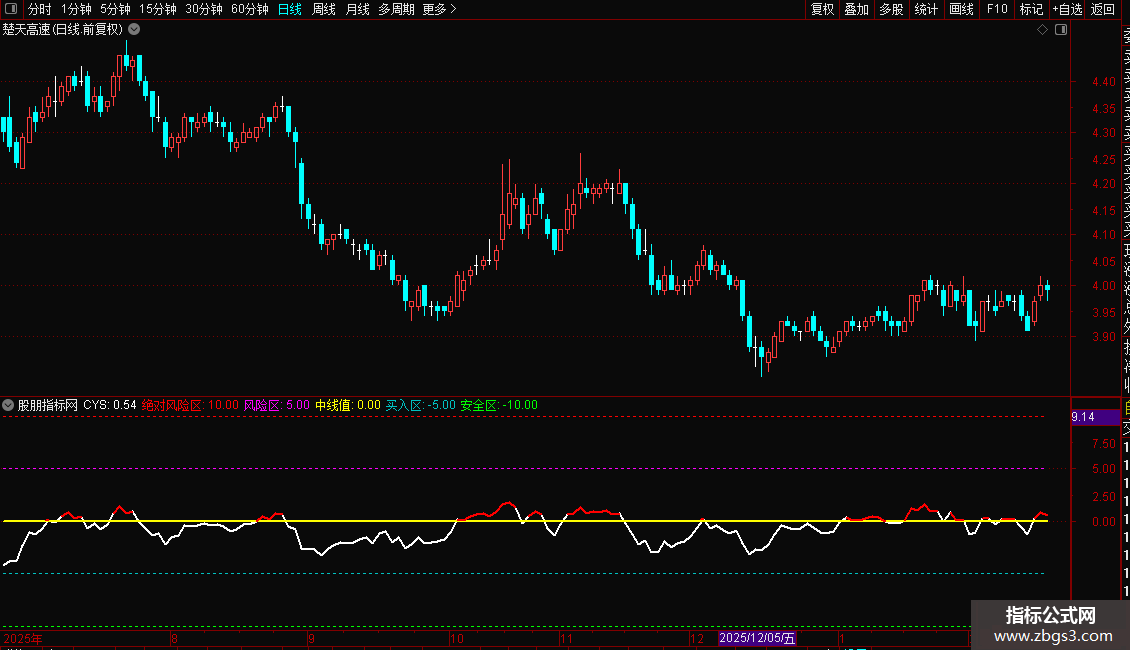 10:绝对风险区。正所谓高处不胜寒,当CYS值大于10时,要注意风险了(加速冲刺的个股可略过,但要注意30分钟、60分钟是否背离)。