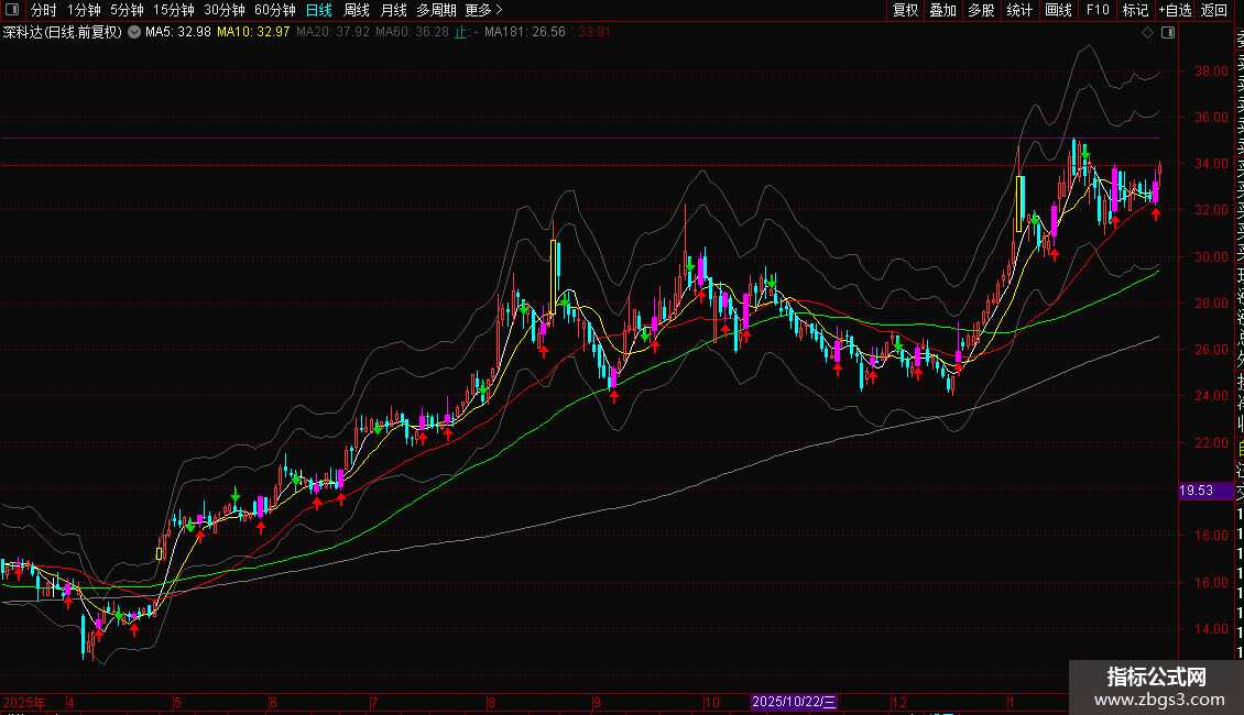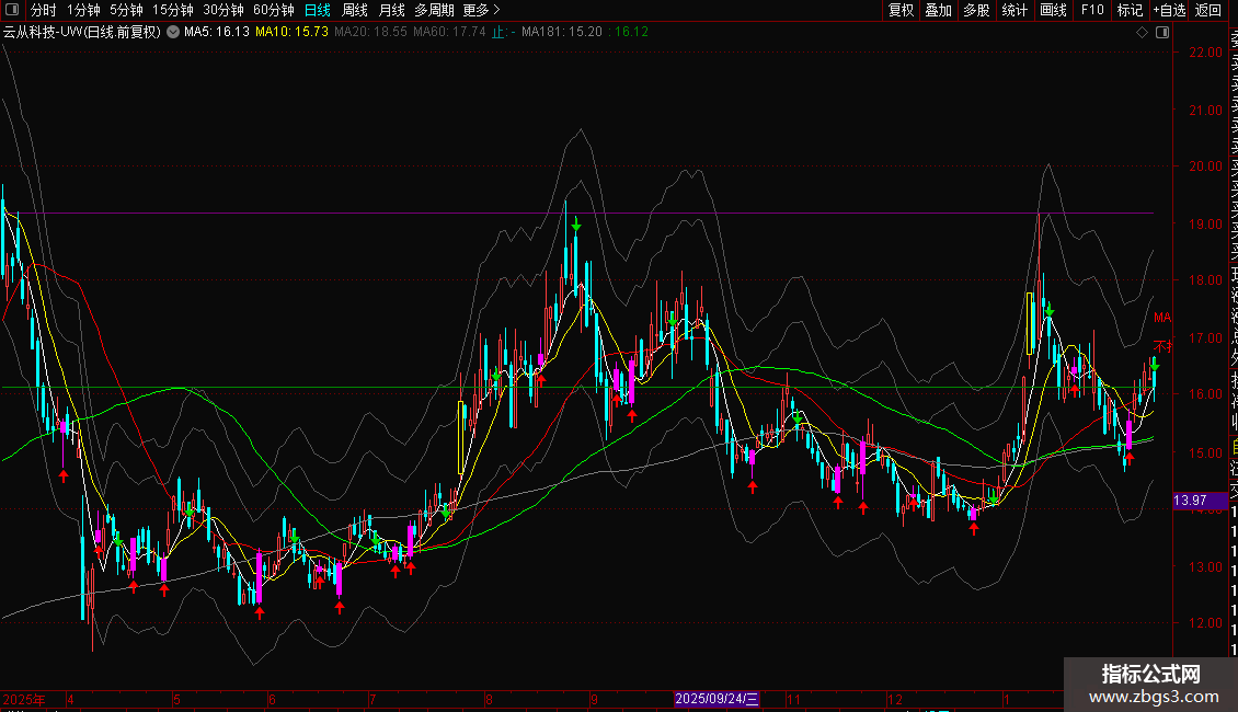 中:=PLOYLINE(1,(高-低)/2+低),COLOR005555,LINETHICK4;