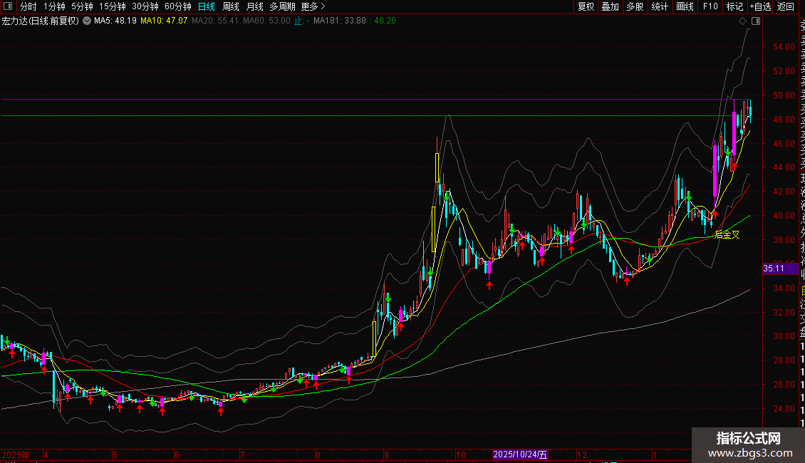 高:PLOYLINE(1,CONST(HHV(H,50))),COLOR770077,LINETHICK1;