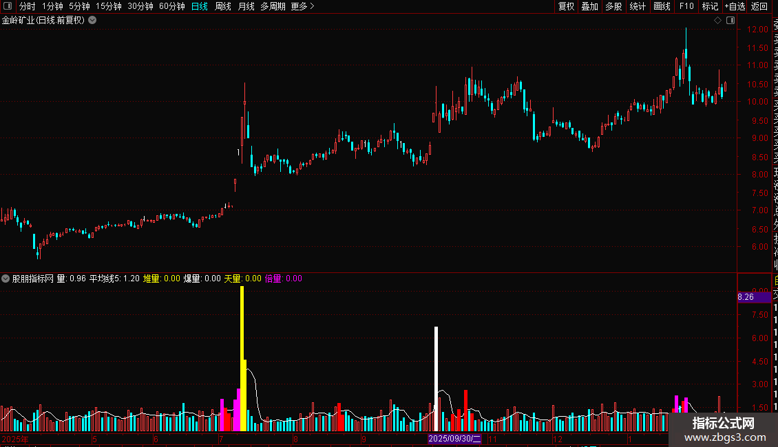 STICKLINE( 堆量>0 AND 爆量=0 ,0,量,3,0),COLORRED;