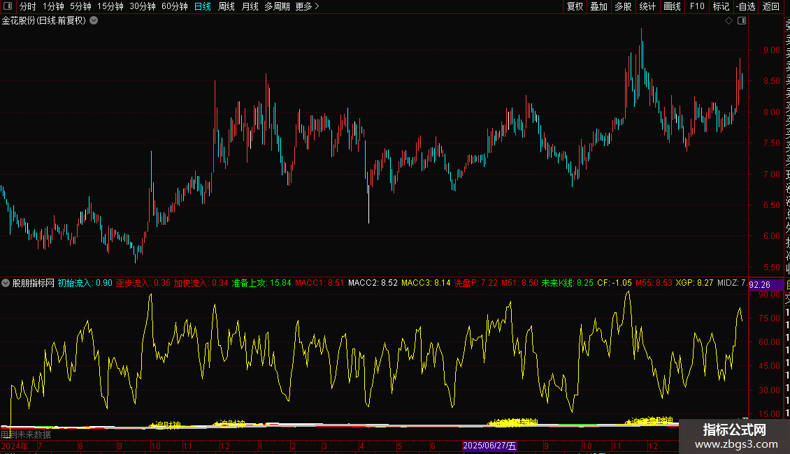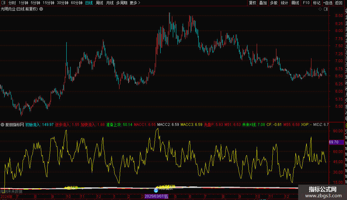分水岭N1:=IF(MA(CLOSE,100)<BN1,BN1,MA(CLOSE,100)),LINETHICK0;