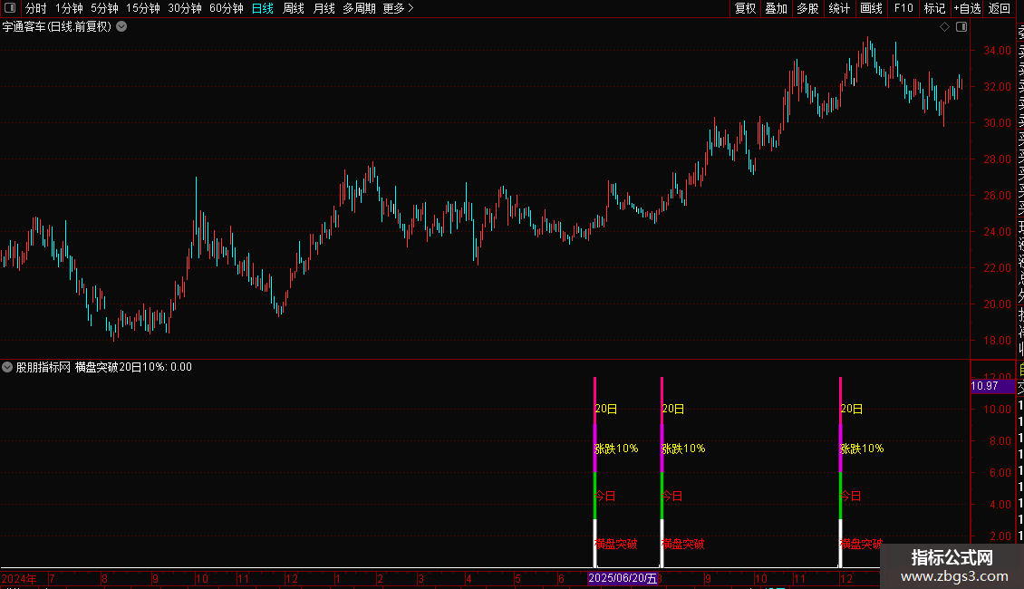 STICKLINE(IF(横盘突破20日10%,-120,0),+3,0,3,0),COLORDDDDDD;