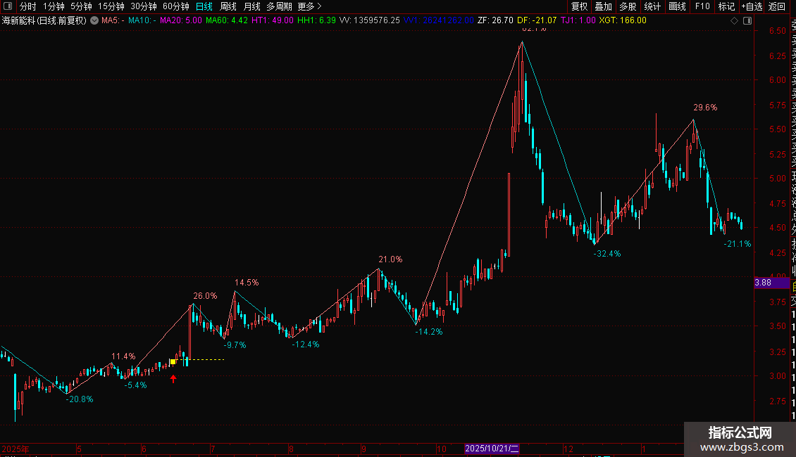 LH:DRAWLINE(L=LLV(L,周期),L,H=HHV(H,周期),H,0),COLORLIRED;