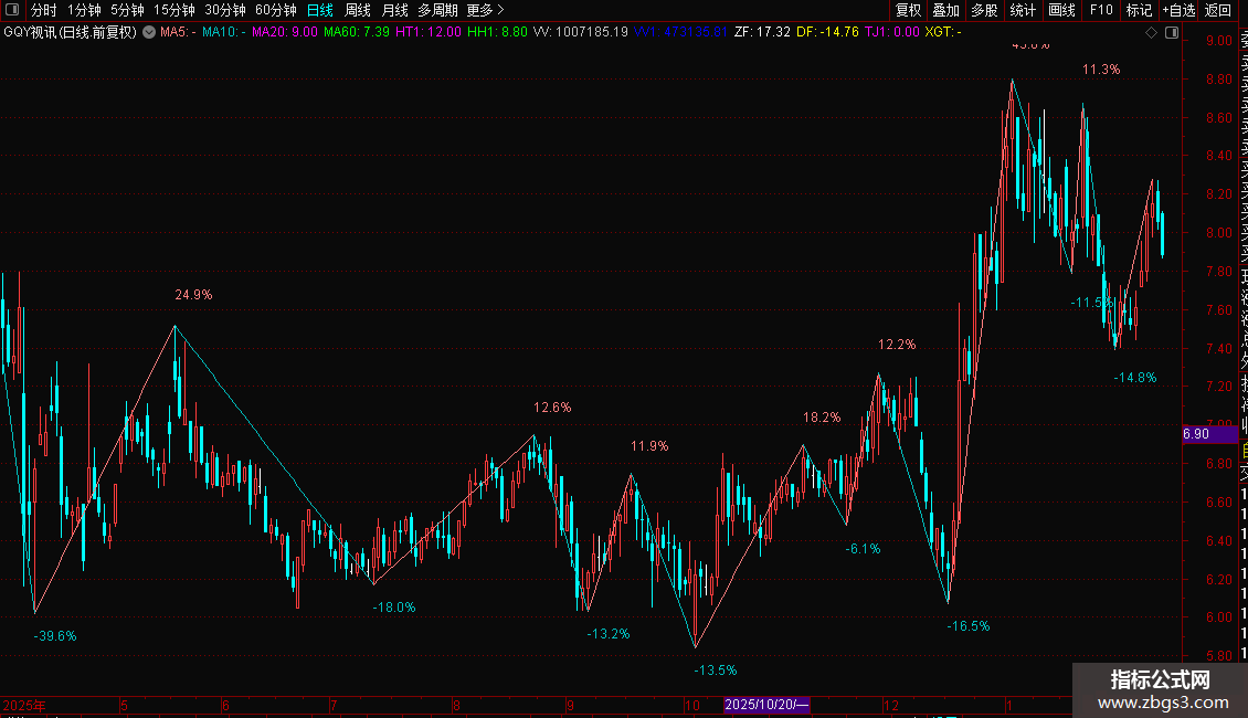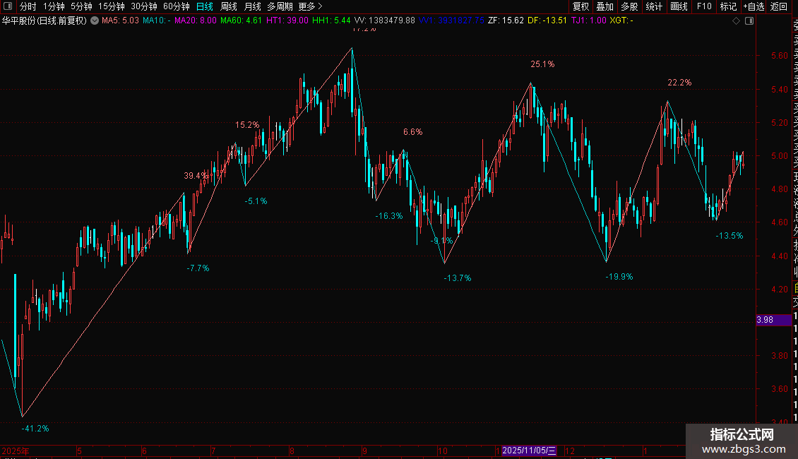 ZF:(HH/LL-1)*100,NODRAW; DF:(LL/HH-1)*100,NODRAW;