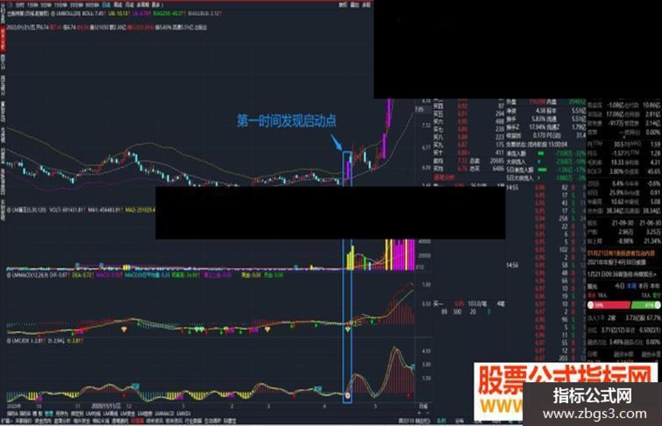 1、牛股启动信号。结合BOLL或其他指标综合判断,第一时间发现牛股启动。