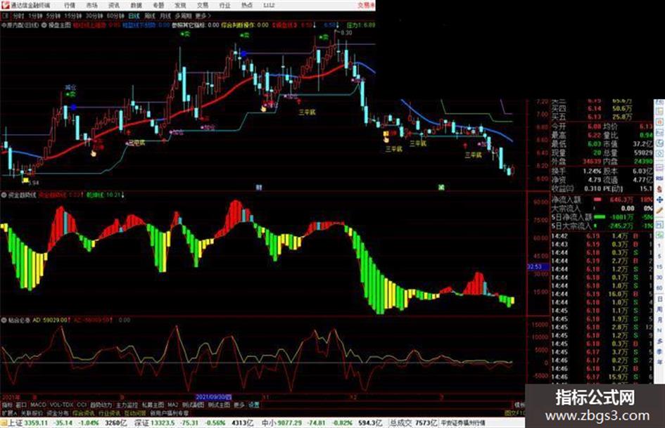 弱势反弹:STICKLINE(资金趋势线<乾坤线 AND 资金趋势线>(REF(资金趋势线*0.95,1)),资金趋势线,乾坤线,2,0),COLORYELLOW;