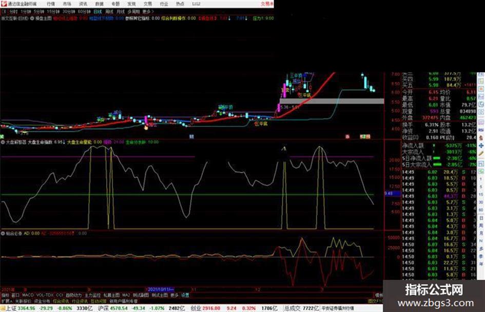 N:=34; M:=3; 大盘生命指数: EMA(100*(CLOSE-LLV(LOW,N))/(HHV(HIGH,N)-LLV(LOW,N)),M)/4; 大盘生命量能:IF(大盘生命指数>23.16,大盘生命指数,0); 强势: 21; 生命分水岭: 10;