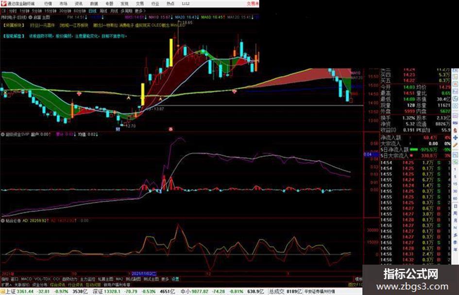 均值:EMA(累计,MIN(10,60)),COLORWHITE;