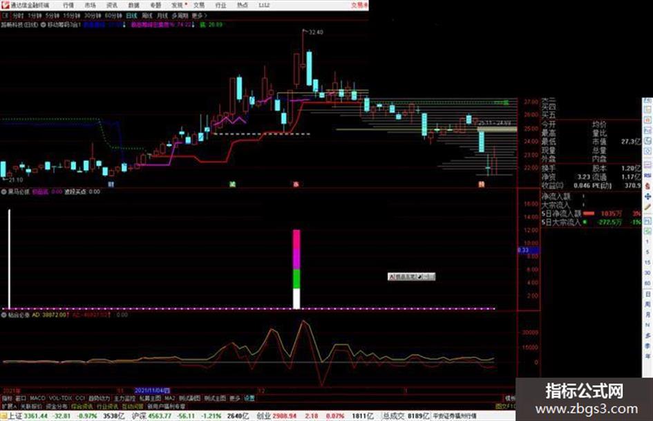 极品底:IF((MA(C,5)-C)/C>0.04 AND (MA(C,10)-MA(C,5))/MA(C,5)>0.04,23,0),LINETHICK2,COLORFF00FF;