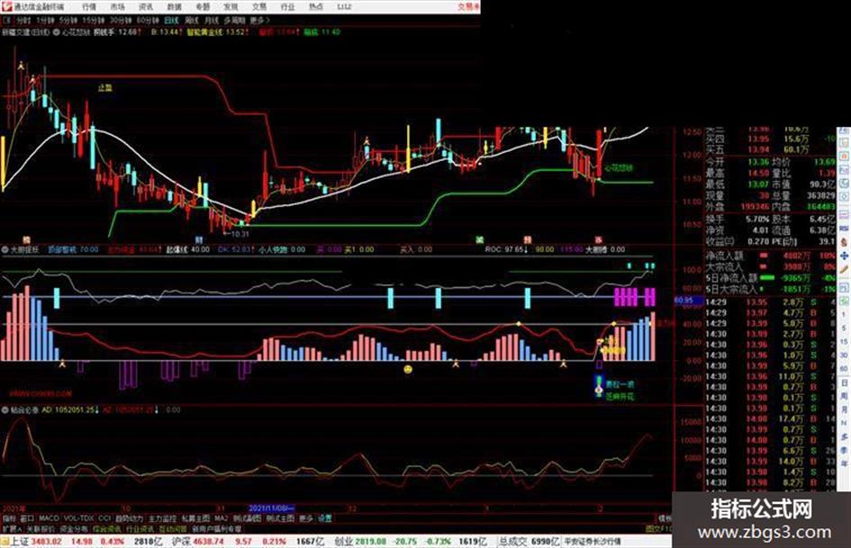 趋势B:=SMA(趋势A,3,1),COLOR00FFFF, LINETHICK2;